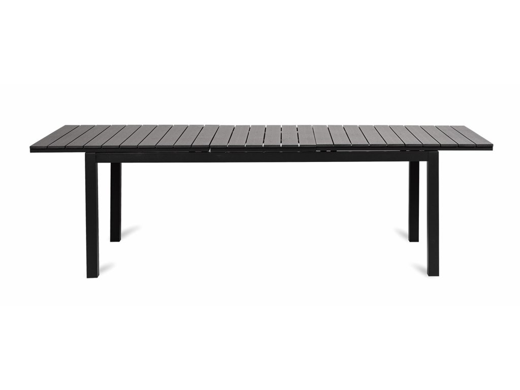 Sestava zahrnuje rozkládací a téměř bezúdržbový stůl vyrobený z hliníku, který doplňuje artwoodová deska. Pevná a stabilní konstrukce z hliníku byla pro delší životnost povrchově ošetřena proti rzi. Umělé dřevo artwood je syntetický materiál, který imituje skutečné dřevo. Navíc je odolný vůči povětrnostním vlivům. Nevyšisuje barvu, nepropustí vodu a nenapadnou jej dřevokazní parazité. Stůl je možné rozložit na 2 rozměry. Snadno prodloužíte délku stolu z 195 cm na 260 cm.