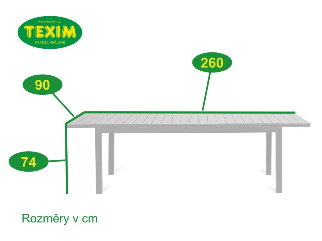 Rozměry: 90 x 200-260 x 74 cm (h x š x v) | |