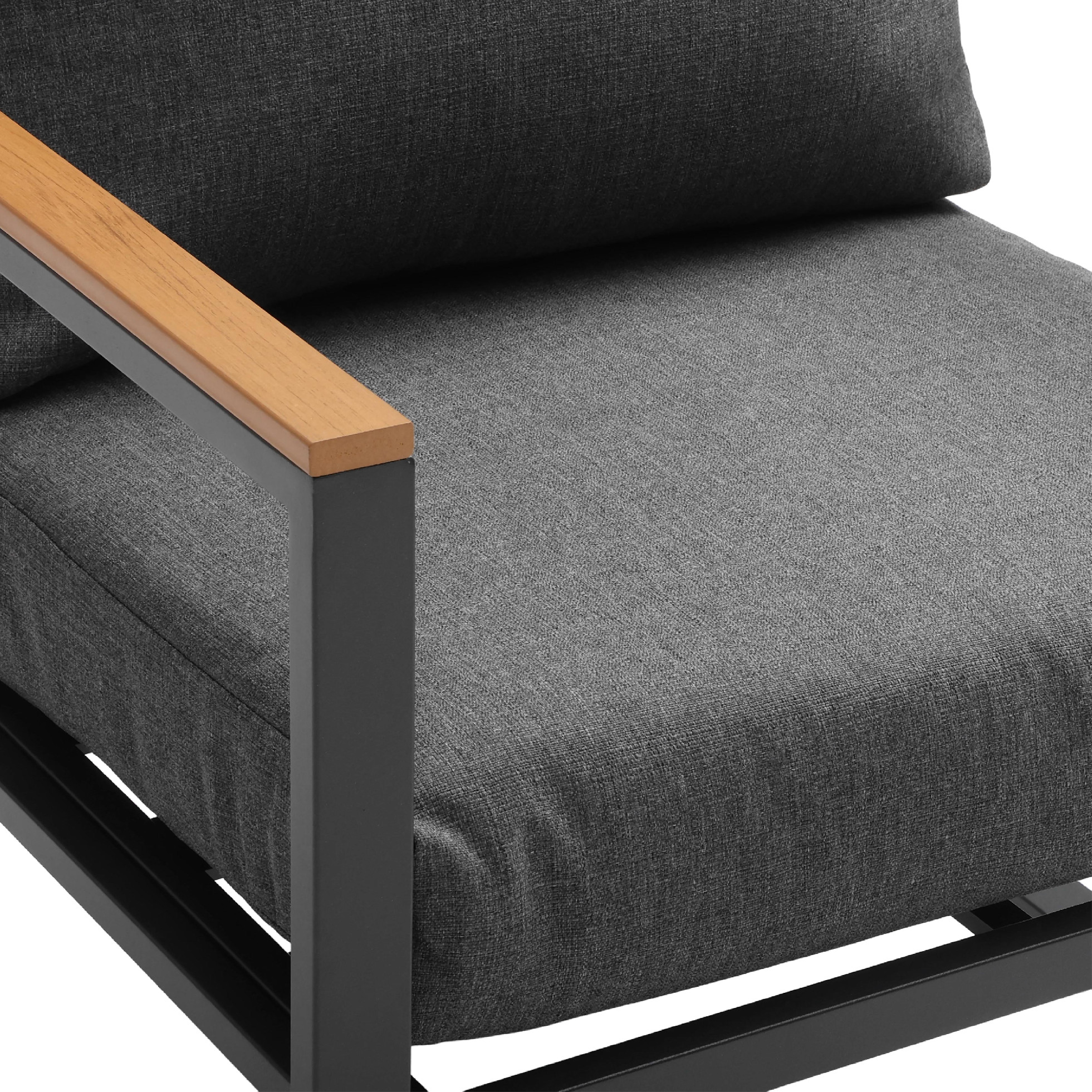 Set je vyroben z oceli, díky čemuž je pevný a odolný. Bude přinášet radost dlouho, ať už ho dáte dovnitř nebo ven. A pevná kovová konstrukce s polyesterovým potahem je garancí, že se křesla nepřeklopí kvůli větru nebo dětské hře. Hnědé područky z artwoodu působí elegantním a moderním dojmem.
