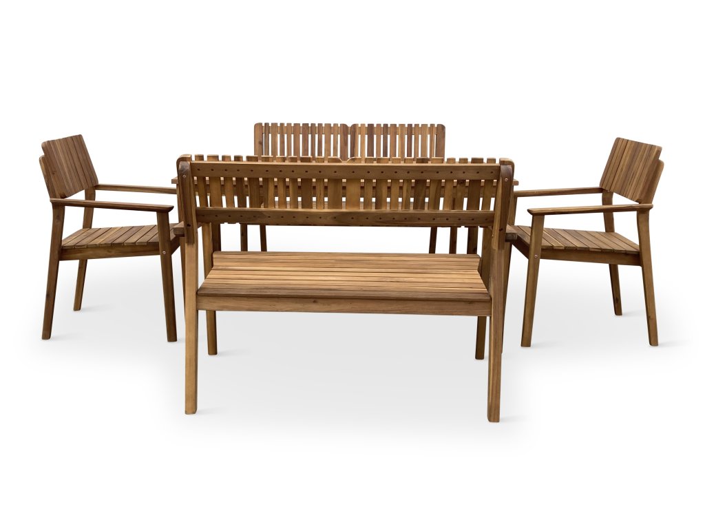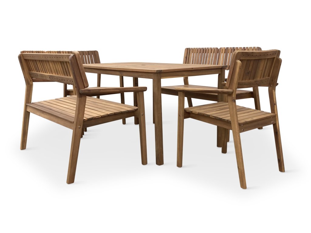 Akáciové dřevo odolává povětrnostním vlivům. Sestavu tak využijete v interiéru i exteriéru. Nábytek z akácie působí přirozeně a snadno zapadne do každé zahrady.