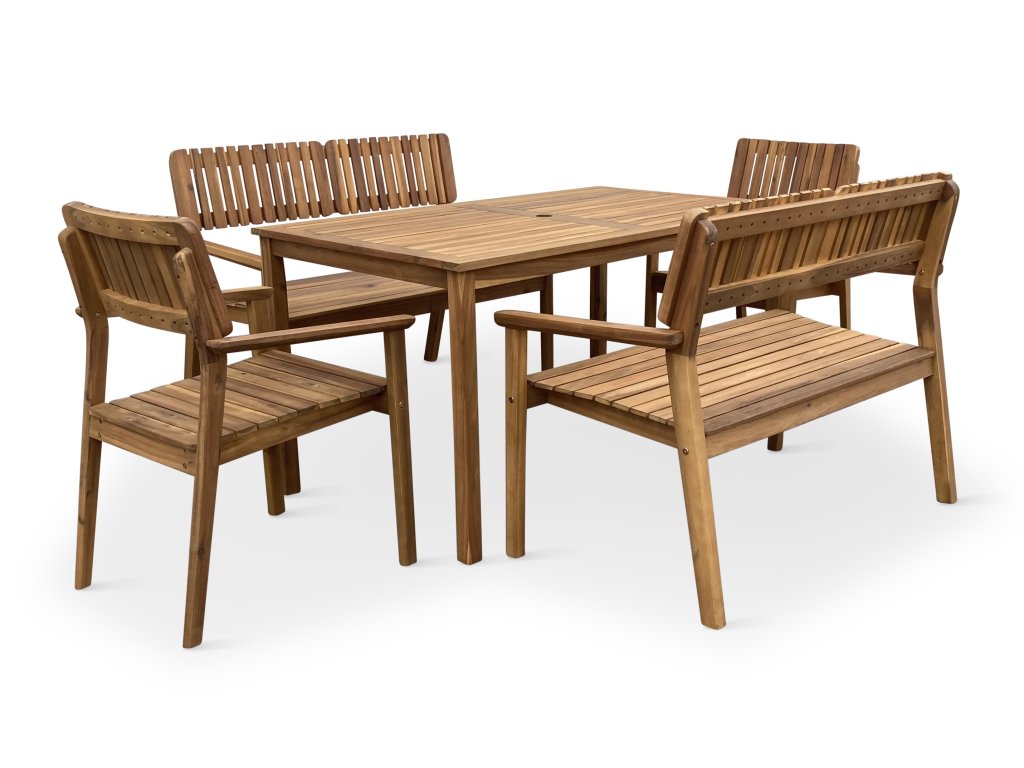 Zahradní dřevěný set - stůl LUCY + 2x křeslo + 2x lavice 2-místná