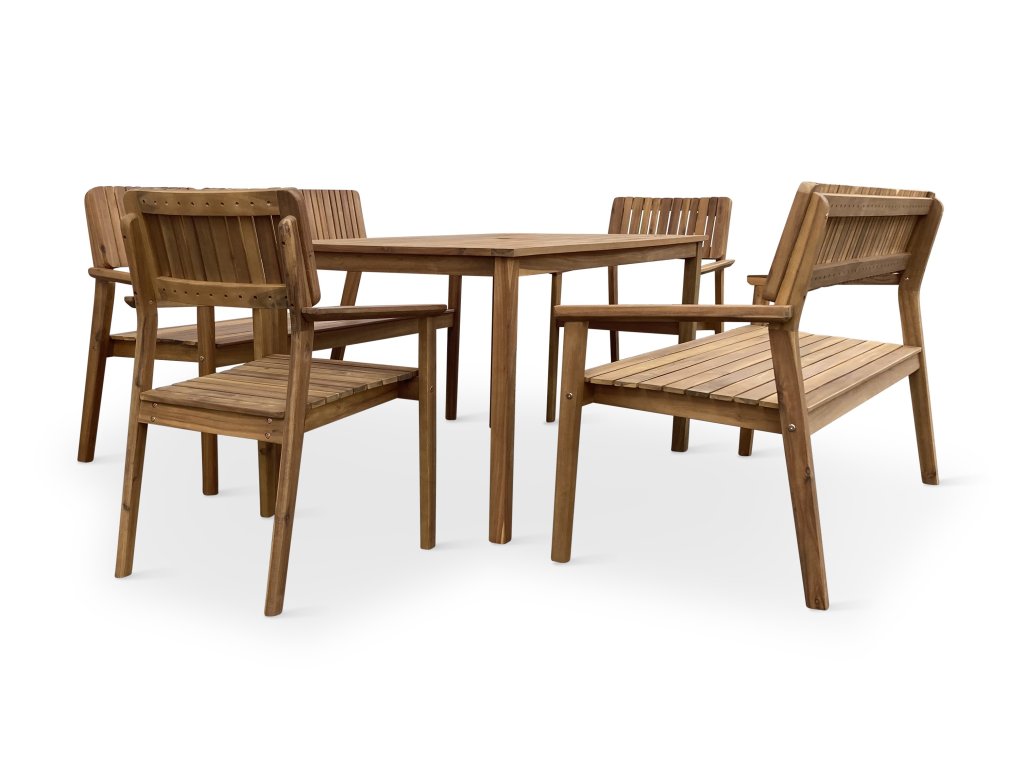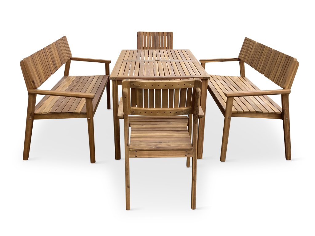 Akáciové dřevo odolává povětrnostním vlivům. Sestavu tak využijete v interiéru i exteriéru. Nábytek z akácie působí přirozeně a snadno zapadne do každé zahrady.
