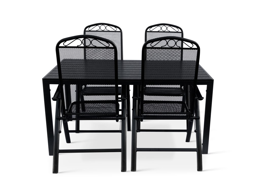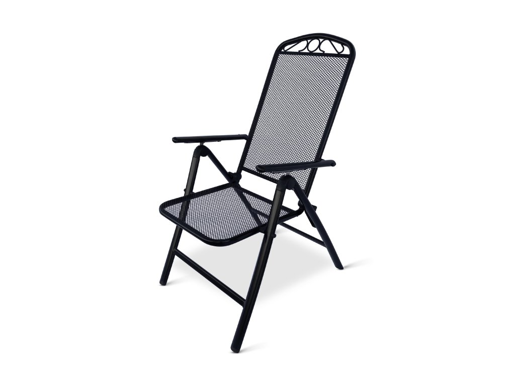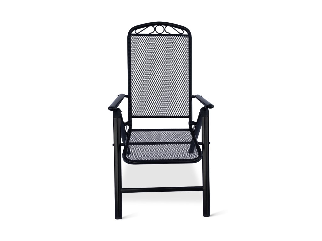 Jídelní stůl doplňují 4 odolná polohovací a skládací křesla vyrobená z kovu. Jistě oceníte jednoduchý a funkční design křesla s područkami. Možnost složení křesla využijete zejména při uskladnění po sezóně. Kovové části byly pro delší životnost ošetřeny proti rzi práškovým lakem. Snadná údržba. Vyrobeno z omyvatelných materiálů. Odolává povětrnostním vlivům.
