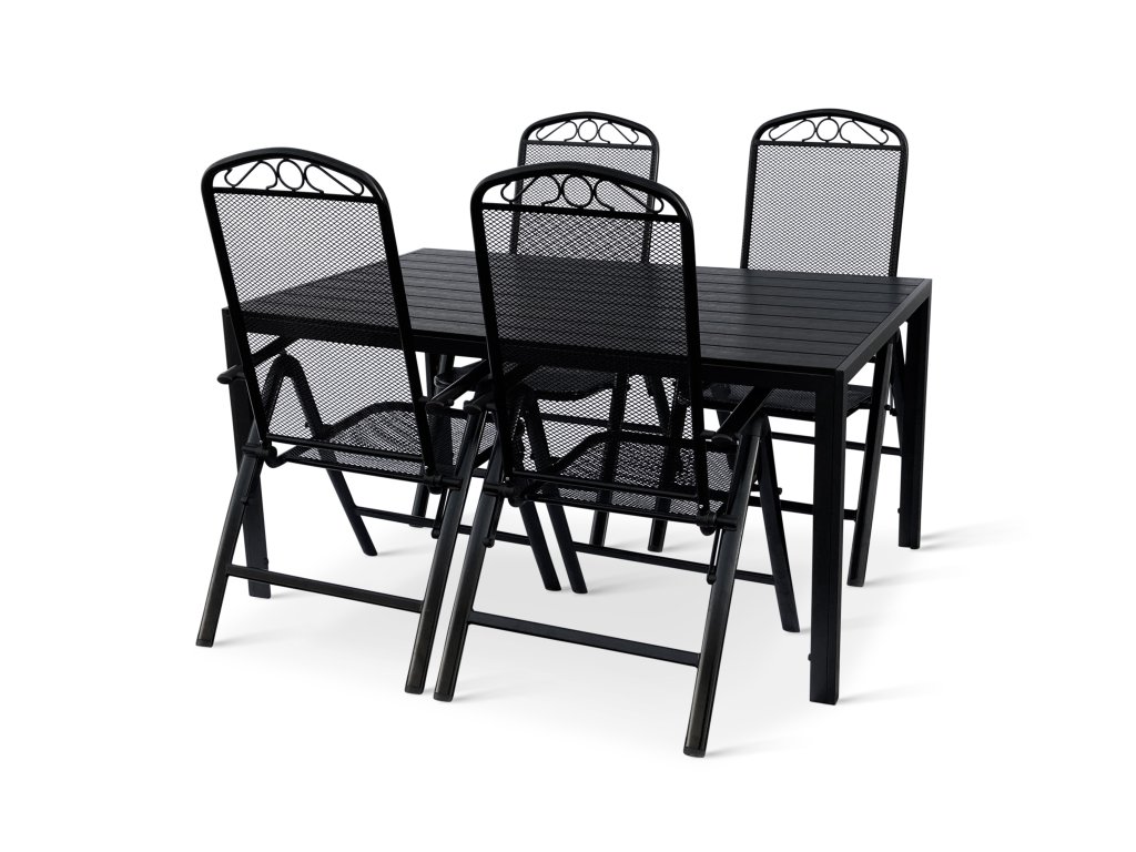 Sestava zahrnuje krásný a lehký stůl vyrobený z materiálů, které nevyžadují zvláštní údržbu. Konstrukce z hliníku ošetřeného proti rzi, deska stolu z Artwoodu a adaptéry u nohou pro větší stabilitu. Klasické tvary a černé provedení stolu.