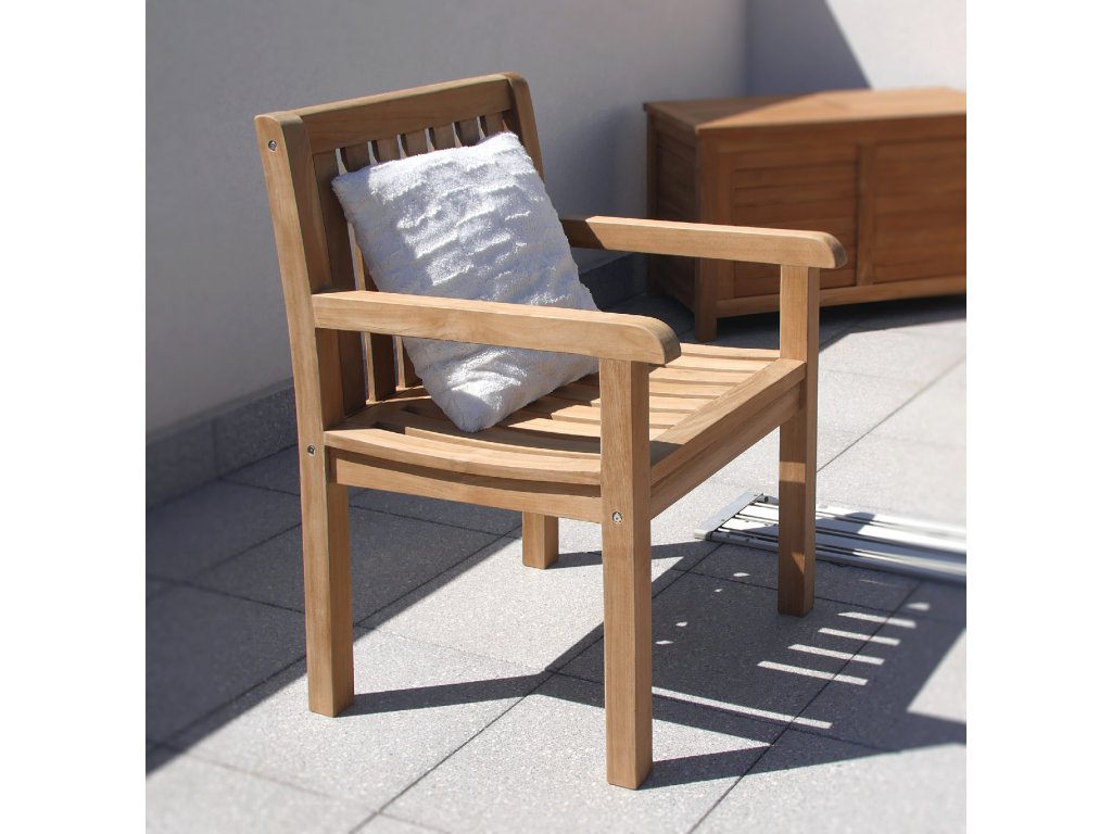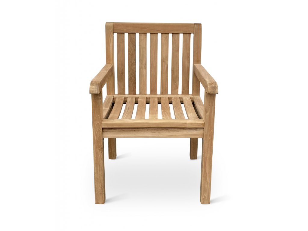 Masivní, designové křeslo z teaku Kingsbury pro Vaši zahradu. Klasický design křesla s područkami a prostorným sedákem o rozměrech 52 x 50 cm. Křeslo Kingsbury je vyrobeno z tvrdého odolného teakového dřeva. Teak má dlouhou životnost, tvarovou stálost, odolnost proti parazitům a škůdcům. To je způsobeno velkým obsahem přírodních olejů. Používá se pro výrobu luxusního nábytku, jak interiérového tak exteriérového použití.