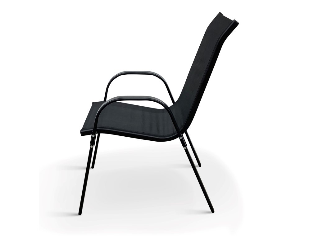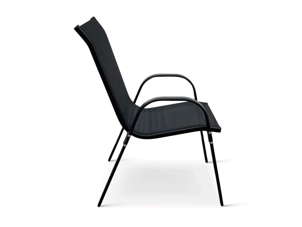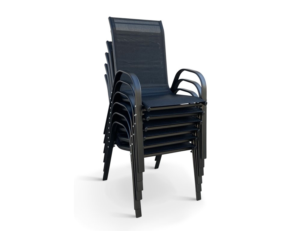 Jídelní stůl doplňují odolné stohovatelné židle s ocelovou konstrukcí a vzdušnou textilií. Vzdušná textilie, ze které je vyroben sedák, je ideální na léto a díky inteligentnímu tvarování velice pohodlná. Židle lze jednoduše naskládat na sebe a nezaberou vám mnoho místa při uložení. Vhodná pro nekomerční použití. Pro delší životnost neskladovat židle ve vlhkých prostorách a nenechávat na dešti.